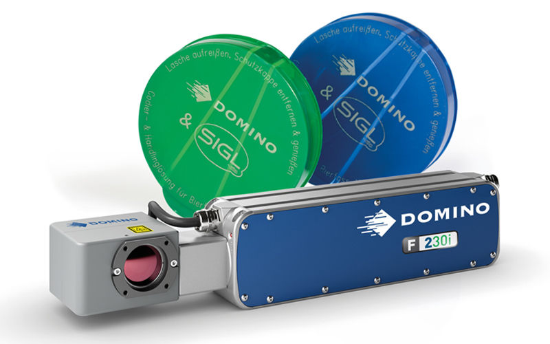 Laser-Beschriftung von SIGL-Kappen mit dem F230i Faserlaser von Domino Deutschland. Mit dem innovativen und umweltverträglichen System erlangen Sie ein Höchstmaß an Flexibilität bei der Just-In-Time Kappengestaltung. Sonderdrucke auch bei kleinen Chargen, wie bspw. Oktoberfestlayouts oder Festivallayouts sind möglich. Das Lasersystem F230i besteht aus drei einzelnen Modulen, die am Kappenaufsetzer angebracht werden.